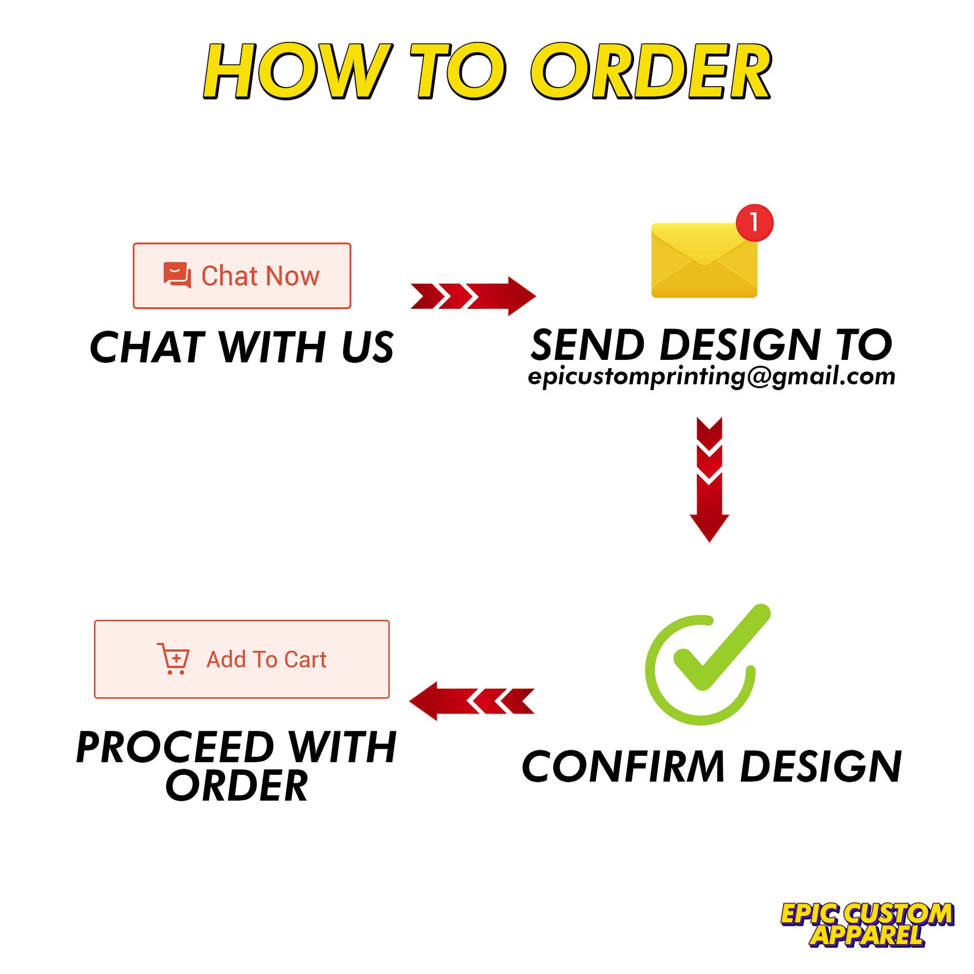 Please email us your logo/ design to epicustomprinting@gmail.com